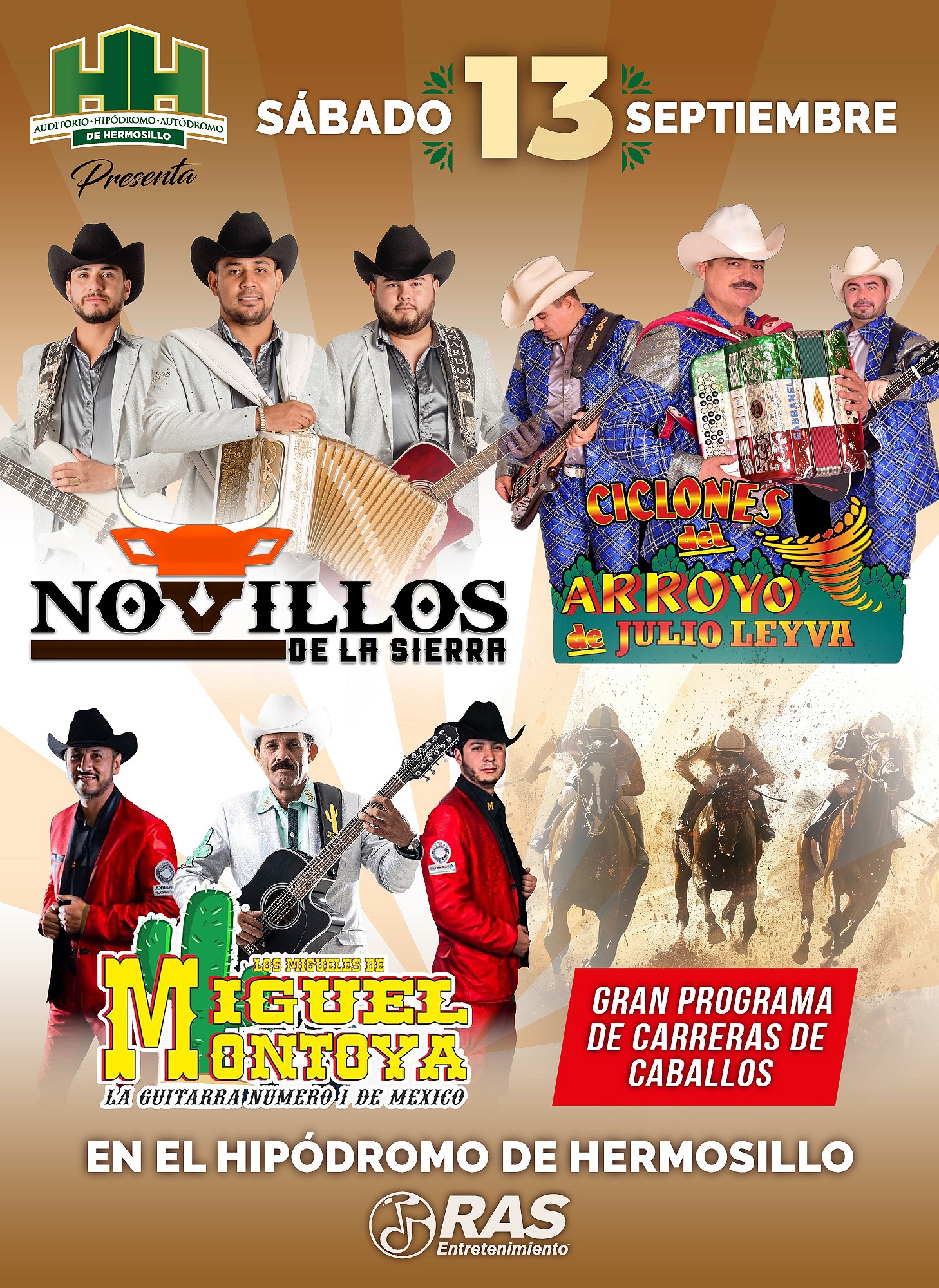 Eventos > NOVILLOS DE LA SIERRA CICLONES DEL ARROYO DE JULIO LEYVA LOS MIGUELES DE MIGUEL MONTOYA 13 / 09 / 2025 20:00:00> Lugar: Hipodromo, Hermosillo, Sonora, México